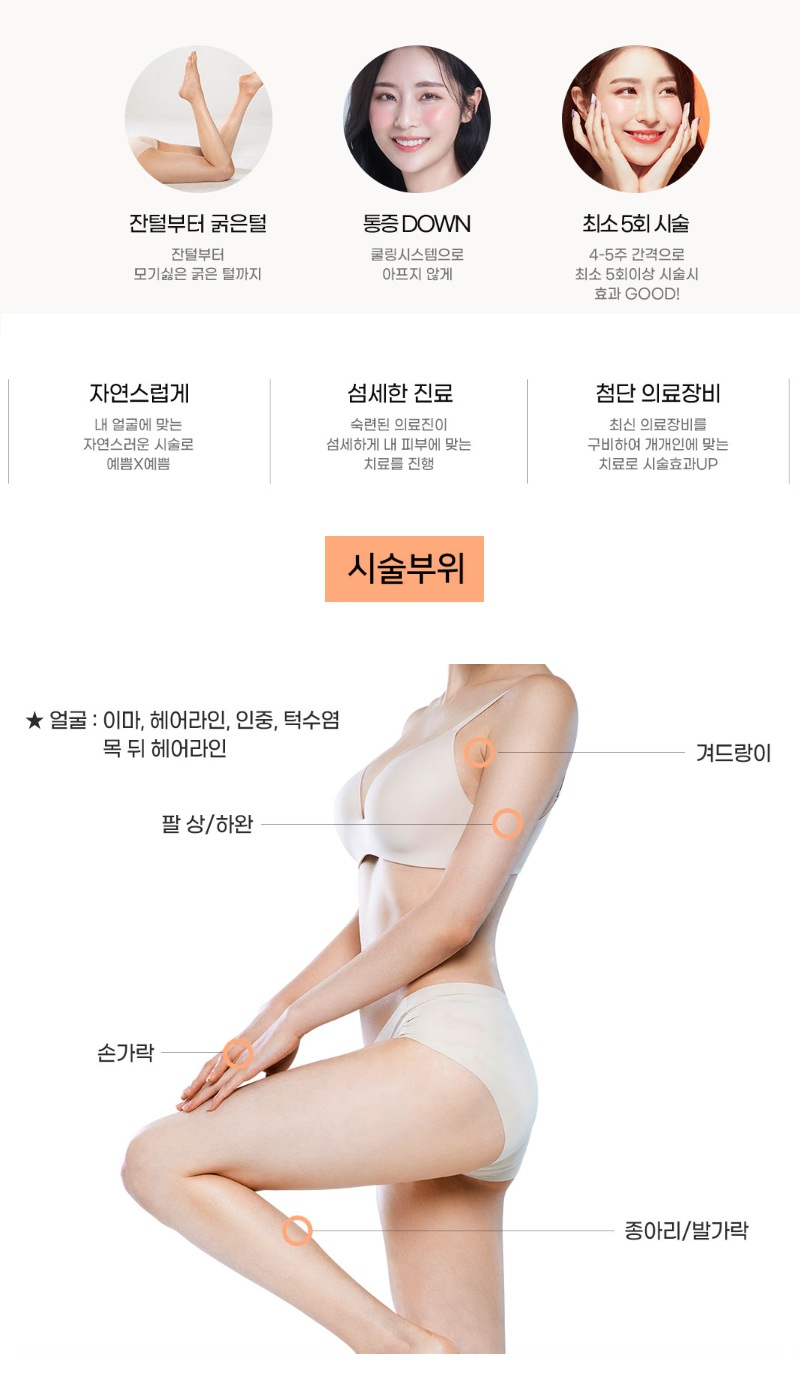 무릎 포함465,000원허벅지 제모 1회 (비접촉식레이저)